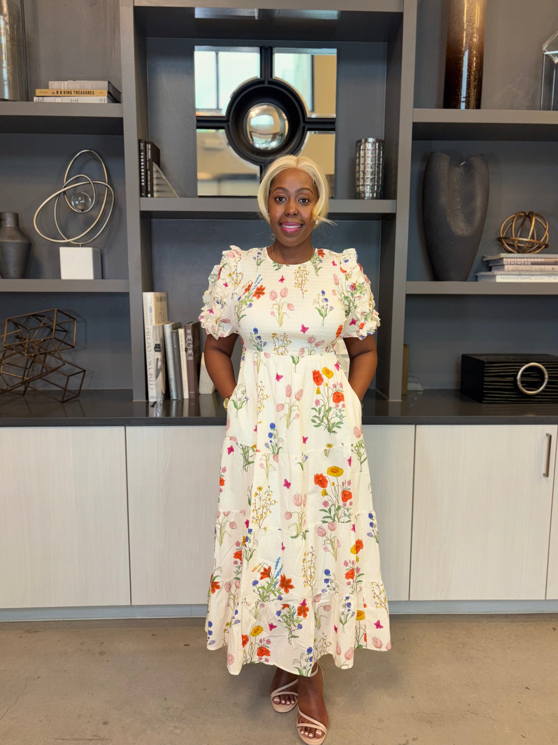 This floral bloom dress is the perfect blend of beauty and functionality. With its vibrant floral pattern, it is visually stunning while its two pockets provide convenient and stylish storage.