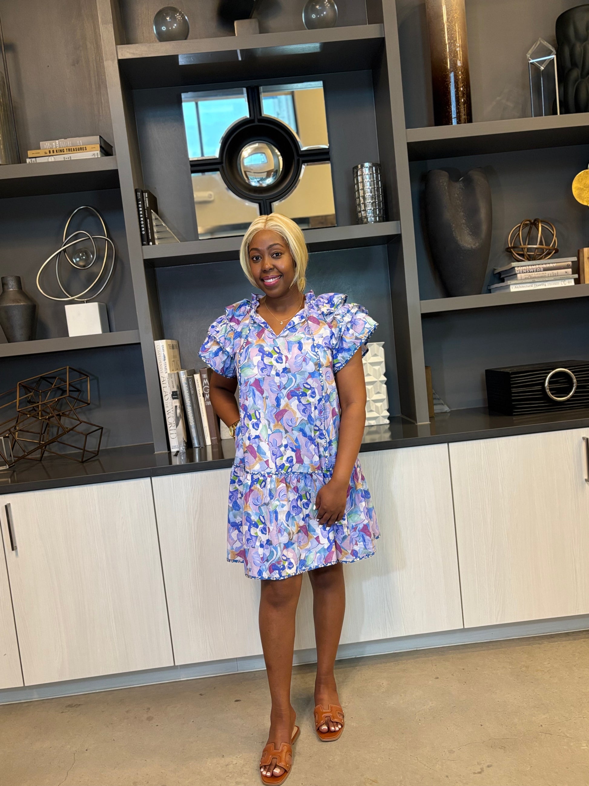 Iris Bloom, the perfect mini dress for sunny weather. The flowy design and comfortable fit make it ideal for any outdoor occasion. Pockets on the outside, you can carry your essentials while looking effortlessly stylish. Relax and enjoy the day in this must-have dress.